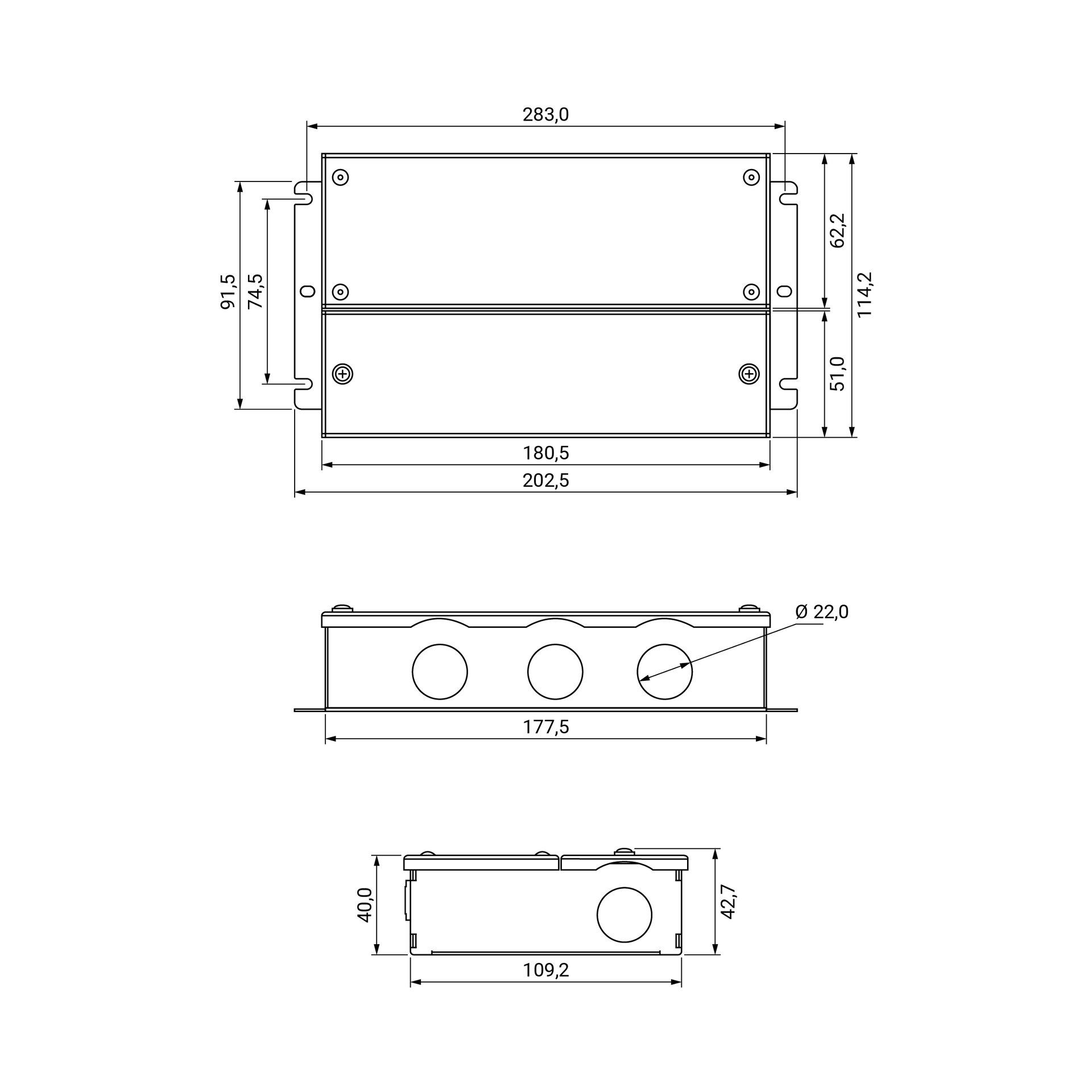 Mitat: Leveys 114,2 mm / Korkeus 42,7 mm / Pituus 203 mm