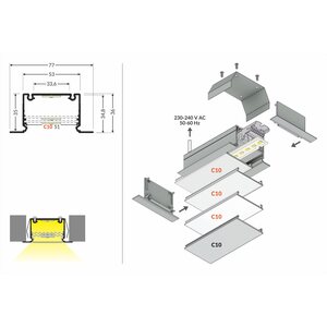 PHIL Recessed C10 on isomman kokoluokan uppoasennettava profiili joka sopii enintään 32 mm leveiden LED-nauhojen ja -moduulien asennukseen. Profiili sopii järeiden mittojensa ja hyvän lämmönsiirtokykynsä ansiosta tehokkaiden valonlähteiden asennukseen, ja on siksi erinomainen valinta yleistila- ja sisustusvalaistuksen ratkaisuihin.