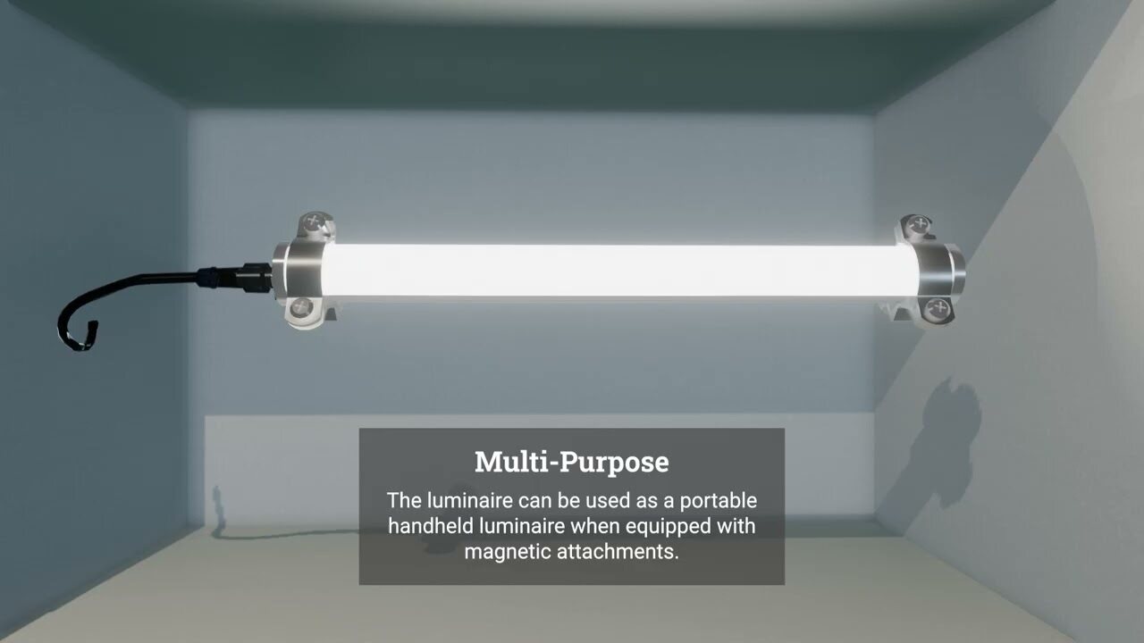 FL-ECL is a compact and energy-efficient luminaire designed for electrical switchboards and cabinets, as well as industrial auxiliary rooms and control rooms. Thanks to its IP44 and IK10 ratings, it is also suitable for use in wet areas and, for example, in crane machinery spaces where the luminaire is exposed to external stress. In addition to the CE marking, the luminaire has ETL certification, making it suitable for use in the North American market.