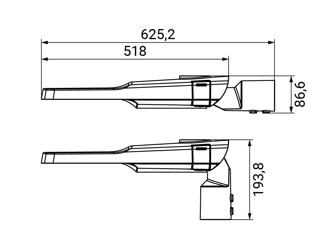 Valaisimen mitat: 518x285x194 mm (PxLxK)