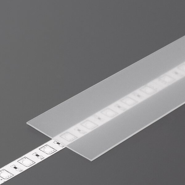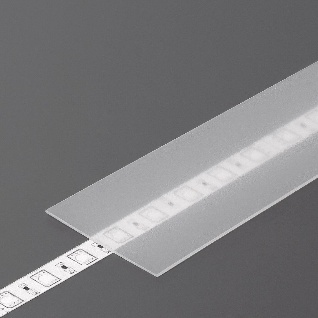 Profiilin uraan työnnettävä frostattu H SLIDE -kuori. Auttaa hajottamaan valoa, suojaa LED-nauhaa pölyltä ja roiskeilta ja viimeistelee asennuksen ulkonäön.